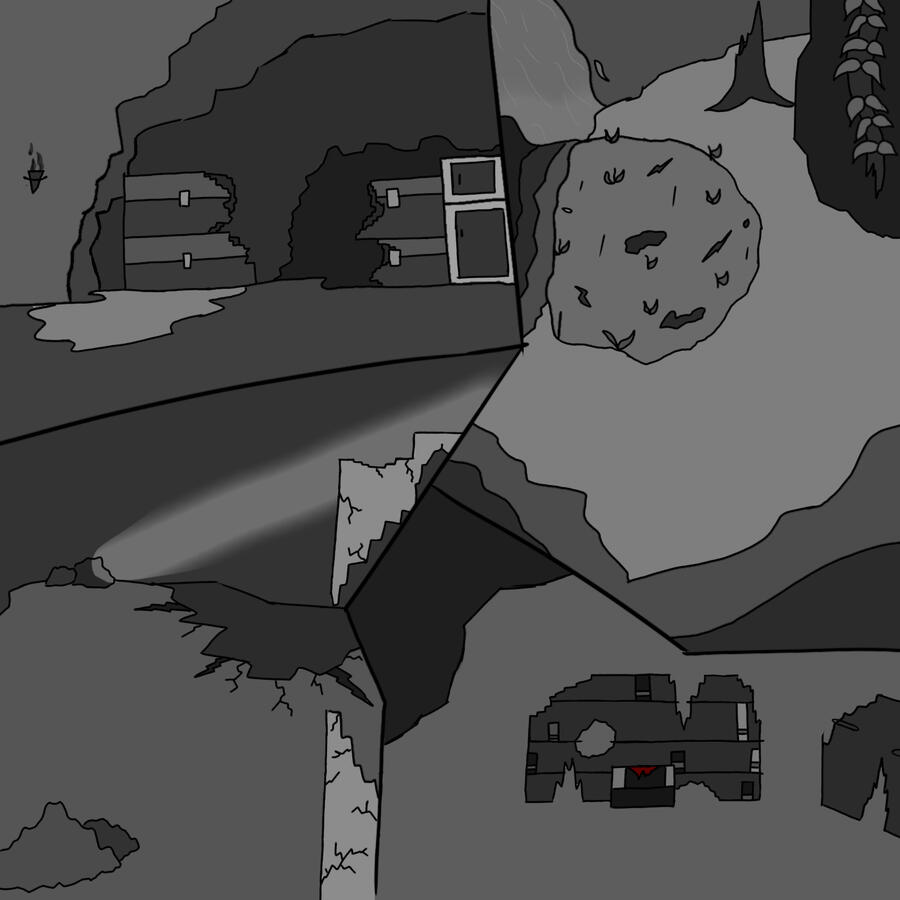 The animation stills. This experimental film is hugely based on the QSMP Purgatory event, an event that lasted 2 weeks. In an event this long, what do I include?This post will explain some of the animation stills that I've drawn and have their stream counterpoints beside them. I will also explain any unusual shot types, compositions and focus settings in the stills.I've divided the stills into three categories, landscape stills which includes shots of the landscapes and bases, people stills which includes anything with a character in them, and filler stills which includes shots that don't fall into the other categories. I've also included a bit about the main characters that will be in the experimental film.